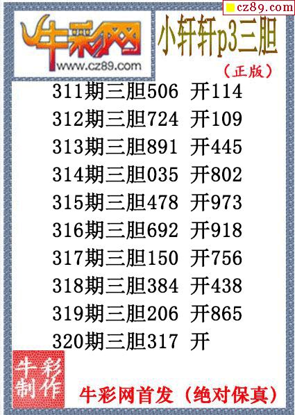 > 小轩轩三胆320期体彩P3图谜(原创)